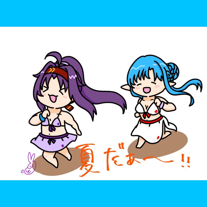 #ユウキとアスナの夏休み 水着で追いかけっこしているユウキとアスナです🏖 #sao_anime #ユウキ #アスナ