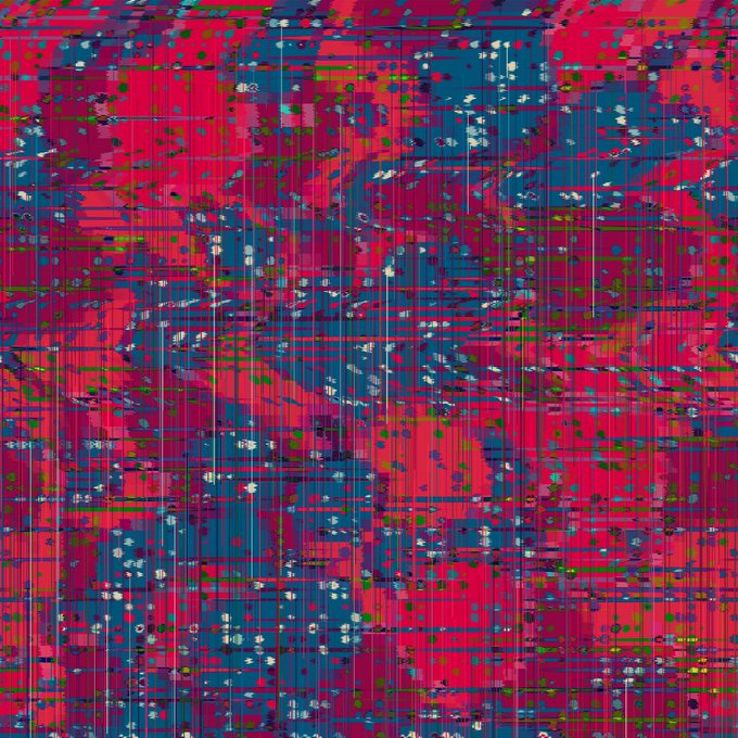 Take a charting library and abuse it to get some dots, use another library to project the result on a 3d mesh with some excessive shaders, throw everything into a video effect library to glitch it all and finally politely ask p5 to melt some pixels. #generativeart #tezos #fxhash