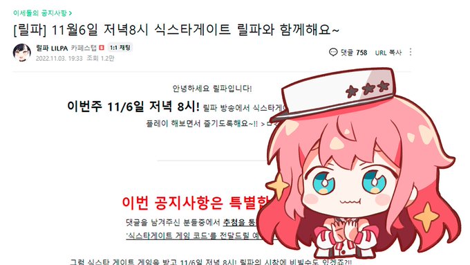 2022년 11월 6일(일) 20시에 공식 트위치 채널에서 만나요❗️