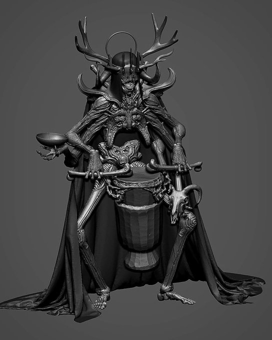 -SHAMAN- screengrab from something new! #darkart #nightmare #nordic #sculpture #shaman #bones #skull #horrorart #horns #gothic #dark #creepy #artistoninstagram #artwork #wip #drums #heavymetalmusic #heilung #crown #sketch #conceptart #tattoo #piercing #tattooart