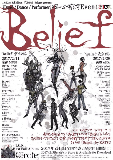 ■1.G.K 1st Full Album 『Circle』 2017.02.03 Release 2017.02.11 at MUSE(Kyoto) 2017.02.25 at club asia(Tokyo) ◇Illustrations:Yumihiko Amano