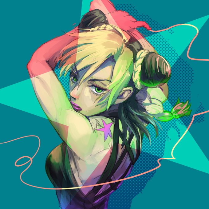 @chikasa_JJ 徐倫描いたよー! リクありがとう!! ジョジョはどんな色使っても許される……楽しかった!