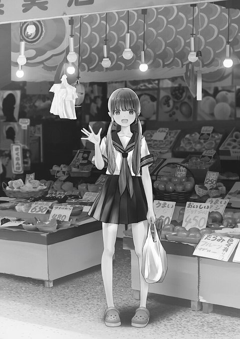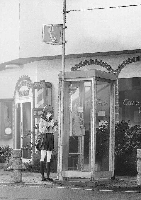#絵をモノクロにするとかっこいい セーラー服の絵を白黒にしたら、戦後の記録写真になりました。