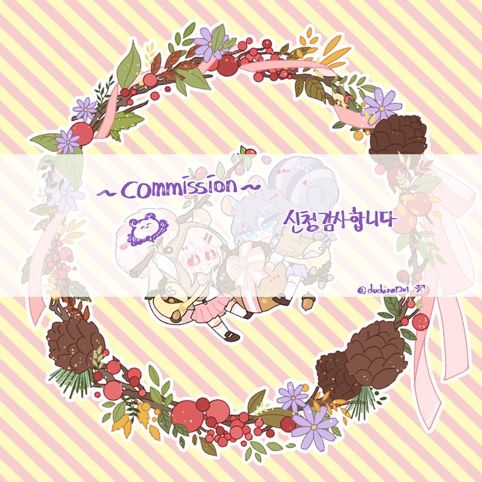 가을리스 고정틀 커미션 입니다. 아래 링크를 확인해 주세요. 21일부터 DM으로 신청받습니다. 100rt마다 추첨으로 한 분씩 그려드립니다. 많은 관심 부탁드립니다. 감사합니다.