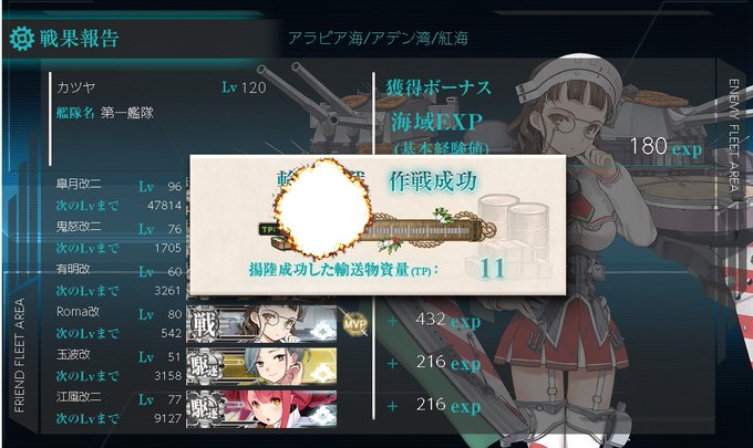 ずっとA勝利でしたが、最後は残りゲージわずかだったので大発降ろして一部の艦を連撃装備に変更、決戦支援も入れてS勝利取りました。