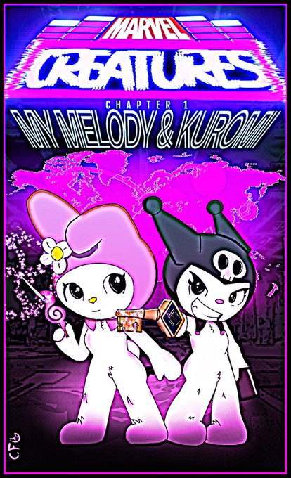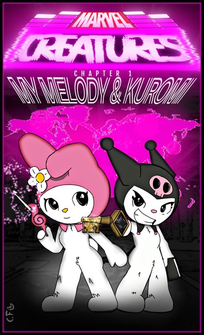 MARVEL CREATURES: Chapter 1: My melody & Kuromi. I can't stop making drawings of sanrio with art from anime comics, now I will make a collection of those little animals from each saga that I know or those that know 😂✌️ #MarvelStudios #Mymelody #Kuromi #Marvel #Art #digitalart