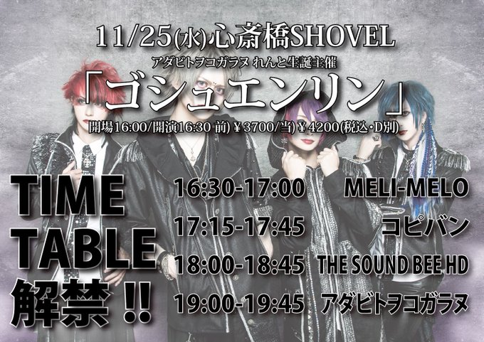 ◆チケットは11/24(木)よりイープラスで発売。お1人様4枚まで。バンド予約無し。