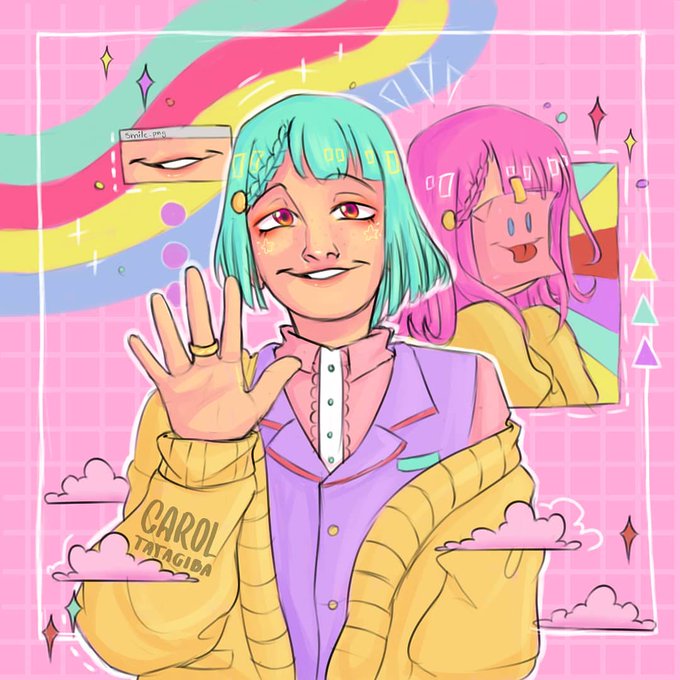 Amo fazer meninas fofas, bruxas, pássaros coloridos(e bons de luta) e tudo colorido(muito colorido) ✨