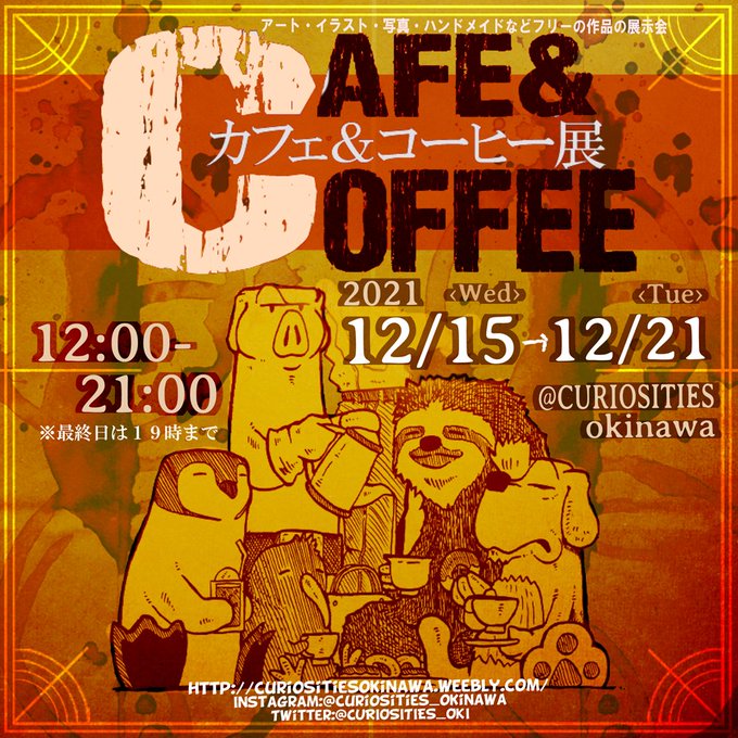 【出展者大募集】 12月のテーマは「カフェ&コーヒー展」! 喫茶展の雰囲気、コーヒーや紅茶の香り 漂う匂いや音楽、風景からカフェガールまで 作家さんの自由な発想で 「カフェ&コーヒー」作品を大募集。 詳しくはHPまでチェックしてくだい!☆ #展示会 #沖縄 #ギャラリー #カフェコーヒー展