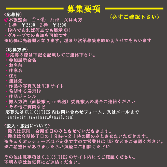 【出展者大募集】 5月のキュリオシティーズ内ギャラリー企画展のテーマは 「鉱石」!☆ キラキラ輝く宝石から武骨な鉱物、 クリスタルのある風景や世界、物語など はたまた鉱石を守る怪物から鉱石の妖精まで「石」に関連する作品を募集しています。^^ #鉱石展 #展示会 #沖縄ギャラリー