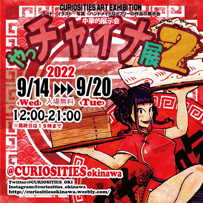 【出展者大募集】 ●やっチャイナ展2● テーマ「チャイナ」の展示会です 肉まんやチャイナ服にカンフー 中華料理からチャイナな風景に文化 チャイナガールにチャイナモンスター オリジナルチャイナからSFチャイナまで!? 「チャイナ」作品を大募集!✨ 詳細はHPまで! #やっチャイナ展 #展示会