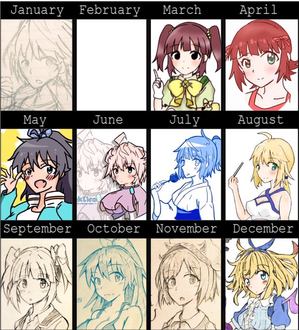 #絵師一年進化録 (全部同じ顔向き…) 4月8月で心折れそうになったんだけど、続けてまあ良かった。