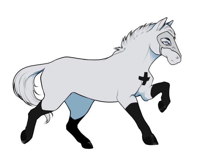 I don't think I shared these--my horses of the Apocalypse characters as drawn by @highwayburial ! Left to right, top to bottom: Kill, Sick, Rot, and Starve. Thank you so much, they look amazing!
