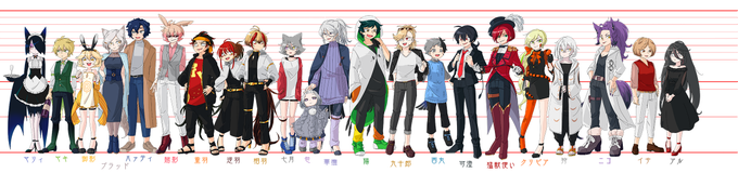 資料用の全身図が全員分できました。レイヤーの都合で足の踏みあいになってます。一人ずつ個別にプロフィールまとめていきます~ #CZnoko