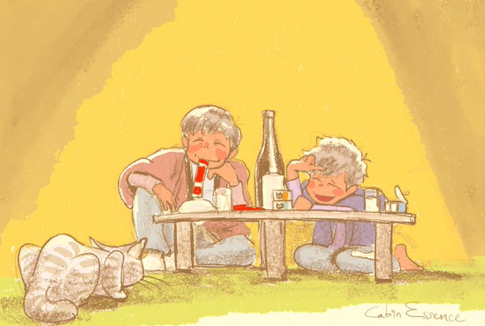 リクエスト頂いておりました「酔っ払った長男と四男」です。 ツマミが切れた夜中、ついに一松自ら秘蔵の猫おやつを出してきたが、翌日覚えていないって怒ってた。