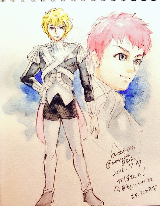 うらブーンさん【@booon_ura 】から頂きました!脱処女顔()のラインハルトとちゃっかりヤン宅にお邪魔してるラインハルト☺️どちらも可愛い〜!水彩塗り綺麗で素敵です! #銀英伝スケブ会