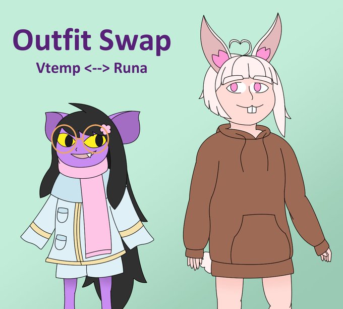 Felt like doing another Outfit Swap, this time between @runa_galdr and @VTemp1ar. It is the championship match of Tiny Vtubers in Oversized Clothes, the comfiest match of all time. #VTemp1art
