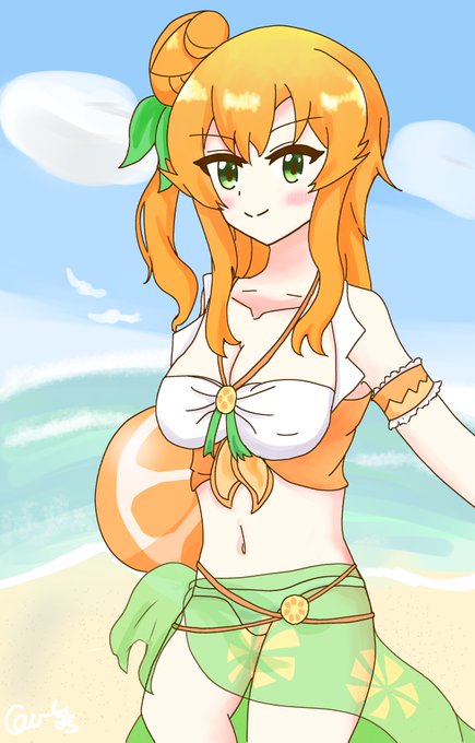 夏も終わりに近づいてきましたね~! 水着姿のミカン描きました!