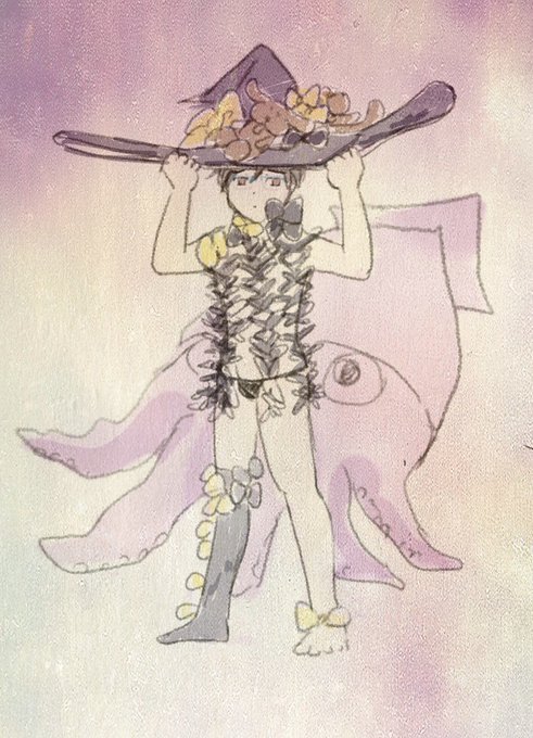 よくわかりませんがfgoのアビーちゃんコスのしょたゆくんとイカを描きました