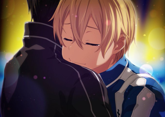 Eugeo hugging Kirito it's the cutest thing I ever see, I really need more of this, I really feel happy!💙🥹🫂
