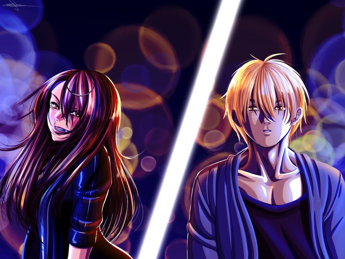 Dessin fini ! Bon, je sais pas trop quoi en penser... J'ai testé sans line... J'ai peut-être fait trop d'effet de lumières en fond... Mais je suis plutôt satisfaite des couleurs. Je remets la version papier avec ! :) #dessin #couple #originalcharacter