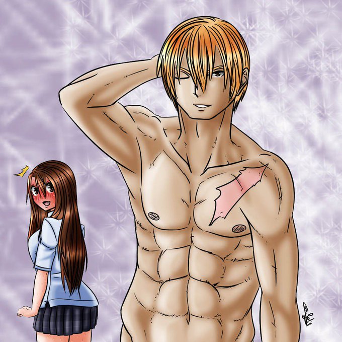 Du vieux dessin qui date de 2015, bien fan service pour ceux/celles qui aiment les hommes musclés et torse nu... Voilà... Bon au final il fait peut-être bibendum mais j'ai du mal à faire les gars, c'était encore plus le cas avant, je suis désolée >< #dessin #digitalart