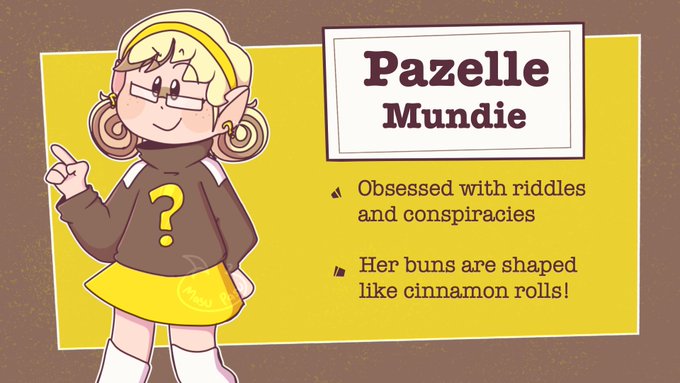 @prof_monarque oh man I have three that I love dearly but one of them is PAZELLE TWIST, MASTER DETECTIVE!!! she's obsessed with mysteries both real and fictitious, the biggest one probably being What Could Her Epithet Possibly Be?