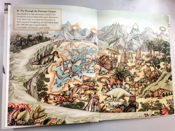 Ready for today's adventure? Try to discover as many dinosaurs as possible. You don't want to miss any details in this folded page.