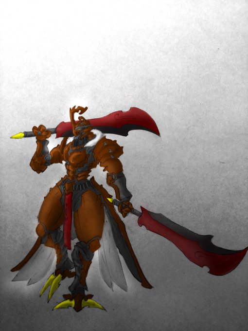 戦って勝った相手の部品を自分のものとするため戦い続けるという狂ったプログラムを持った機械兵。体中部品はバラバラで、原型を留めていない個体ほど強いとされ危険な存在である。20RTぐらい行ったら進化後描こうかな(_ _).。o○
