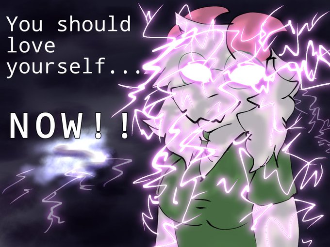 Ralsei walks on the street drinking her ice cold.. water as she looks at a meme on her.