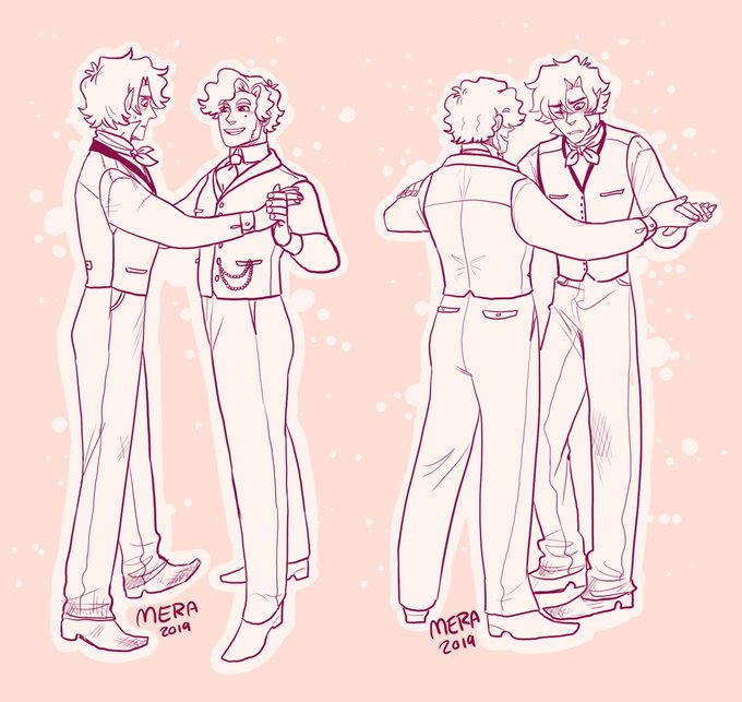 Theodore teaches Oliver how to waltz, but he keeps looking down at his feet. Theodore thinks it's cute tho.