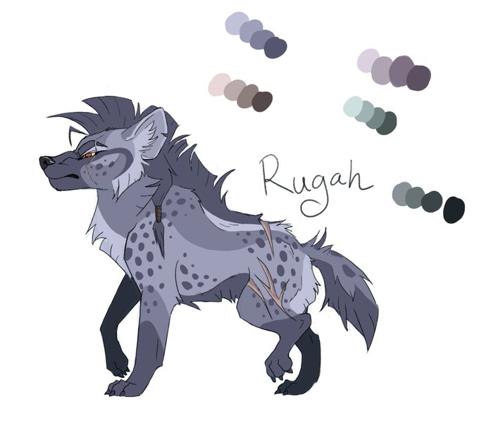 I wasn't satisfied with Rugah's design, so I tried some over color pallets and markings. Ended up deciding on cool de-saturated colors. She is Feyn's antagonist and he is more saturated warm colors now, so I think this is better.