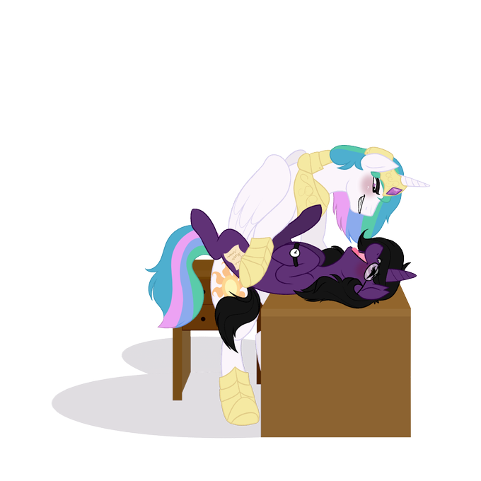 Got commissioned to draw a genderbent Celestia with someone's OC doin' it on desk