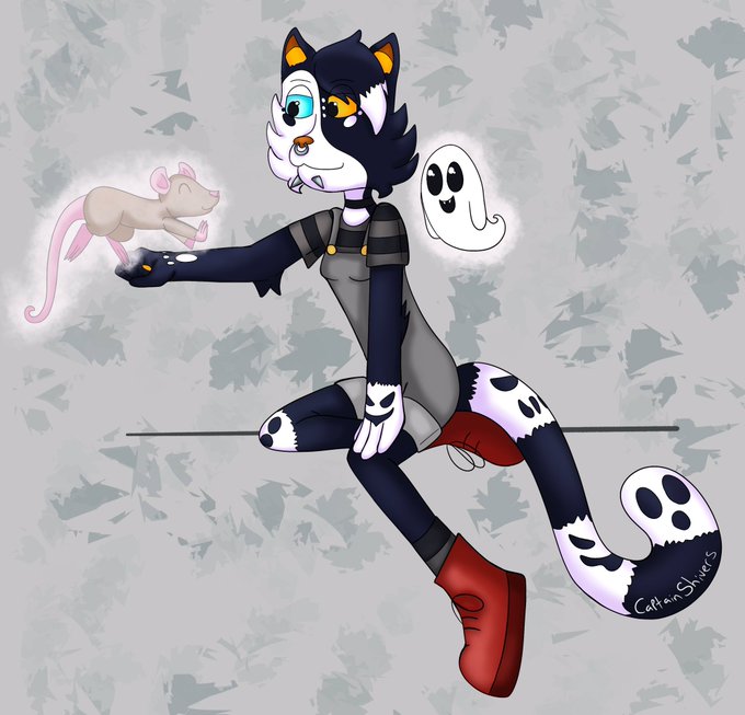 Redesign of a suuuper old OC of mine, Pumpkin! 🎃 she’s a spooky kitty who hangs out with ghosts 👻