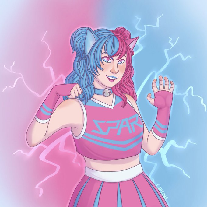 You know like “Nya” (Drawing of @seiun904 ‘s @Hangzhou_Spark Nero girl design in a cheerleader outfit because why not.)