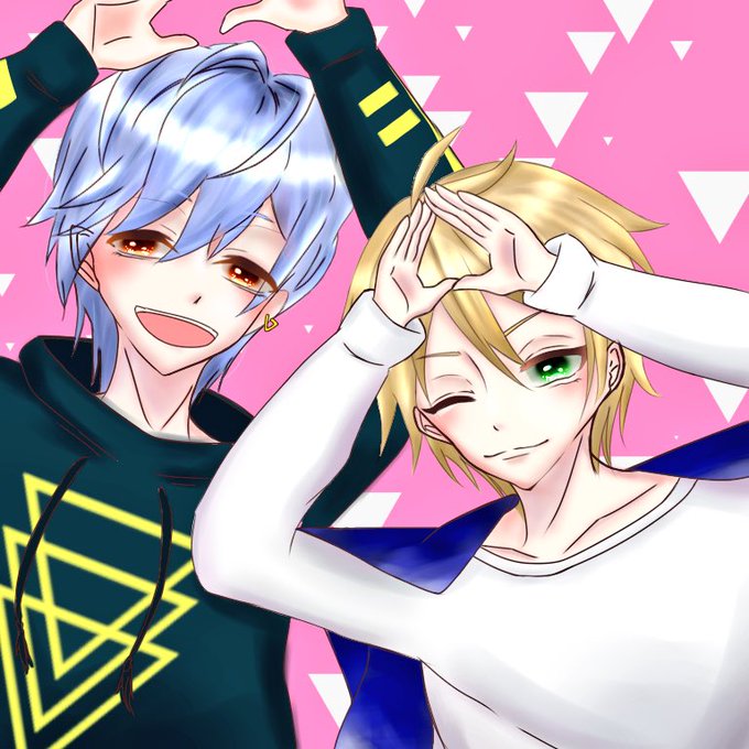 A3の夏組、三角と一成描かせてもらいました✏︎✎✐ プリクラみたいな感じで描いてみたーり(๑•🐽•๑) さんかくさんかく〜! #A3 #エースリーお絵かき