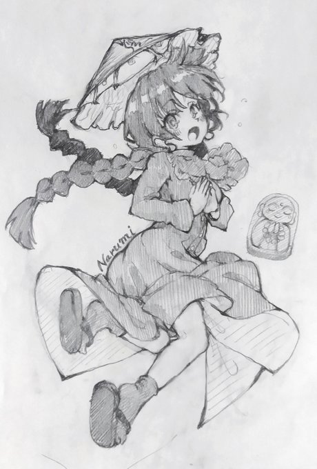 いつの間にかふぉろわさん4200↑なりましたので取り急ぎ鉛筆ですが、4shi2ni=タヒ神・小町っちゃんを。…小町には今日も舟を漕いでいて欲しい