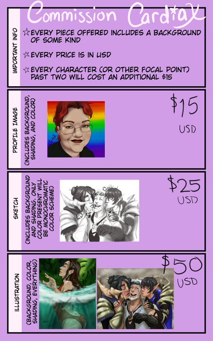 #PortfolioDay ??? Idk. My "portfolio," until I get my website updated and fully online, is basically my commissions sheet. Here we go though.