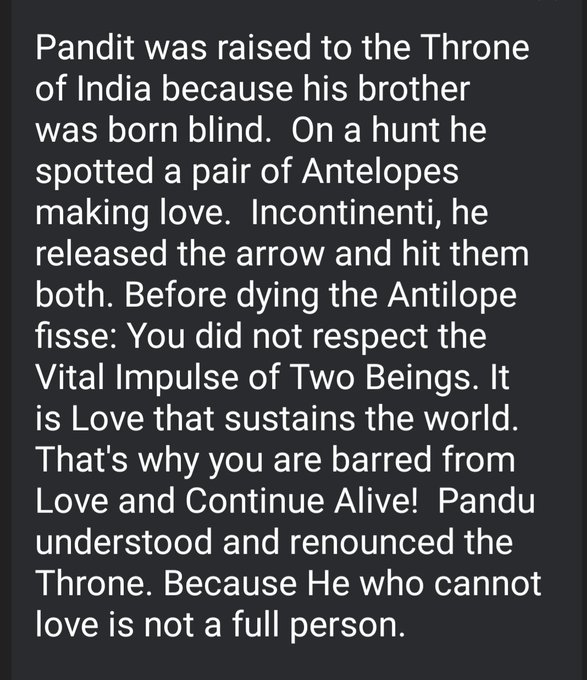 One day Pandit was walking in the Garden with his wife Madrid when he felt the Uncontrollable Impulse of Love. By embrace Madrid they were consumed.