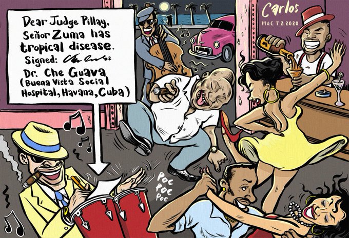 In today's @mailandguardian cartoon, we can exclusively reveal #Zuma's next sick note -- PLUS we go inside his mystery hospital in Cuba! #ZumaTrial