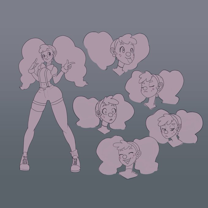 Expression sheets and color explorations for this character I drew a while ago.