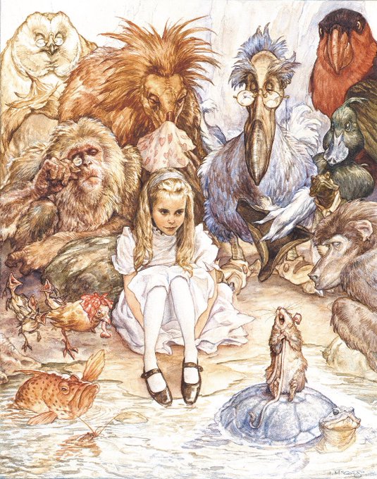 The pool of tears was getting quite crowded with the birds and animals that had fallen into it. Alice led the way and the whole party swam to the shore ...