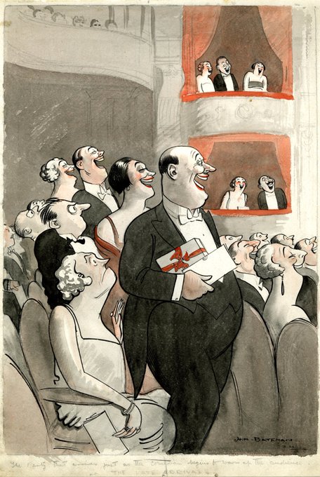 🖋️H.M. Bateman: The Late Arrivals, The Tatler, 3 December 1922. In a Royal Society of Arts lecture in 1949, Bateman first promoted the idea of a museum of cartoon art in Britain, a dream his daughter Diana (a founder of the Cartoon Art Trust) did much to realise. #MuseumFromHome