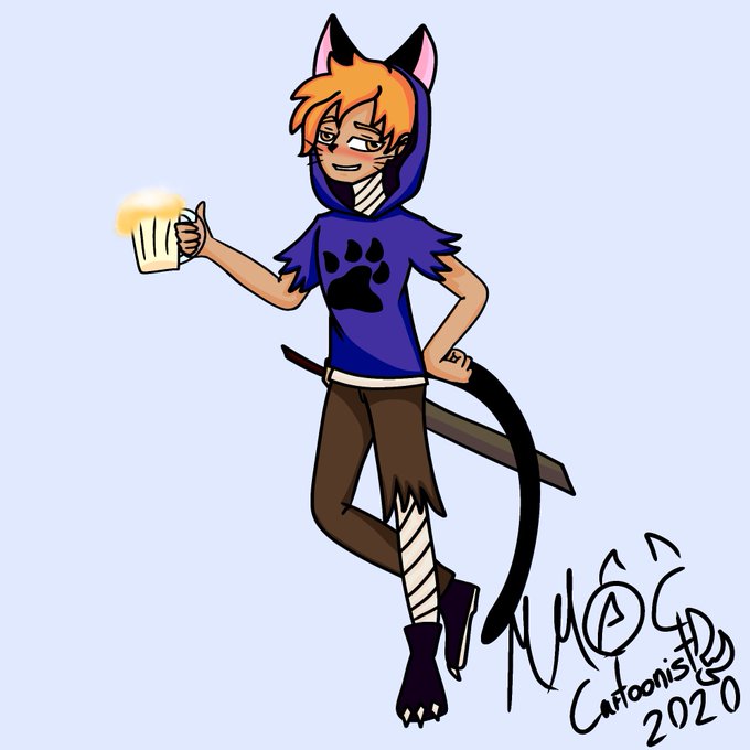 Esta fue mi colaboración para el collab de frainhalla (Instagram)un guerrero disfrutando la fiesta. Lukyan es un joven espadachín, es buena persona, pero fácil de manipular ;3