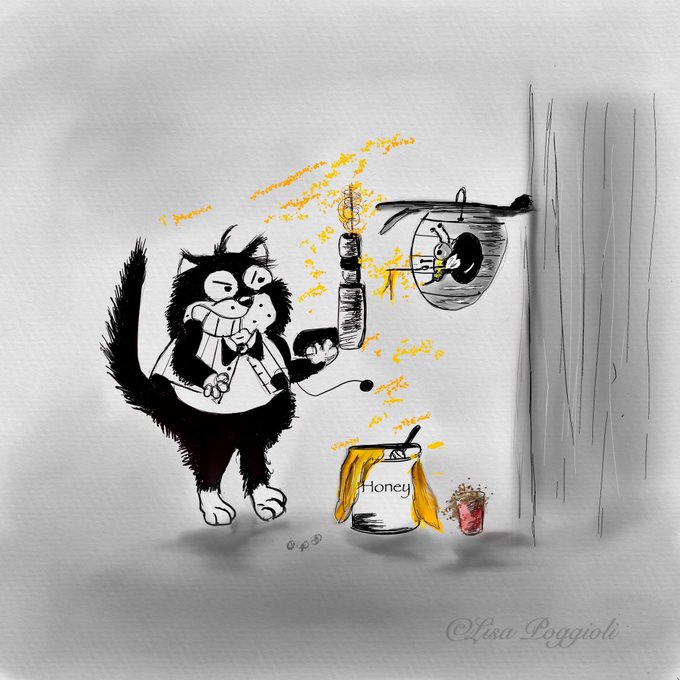 Thank you Matt @mattspencer18 for giving Dex the idea of “Honey Dexpresso!” .. What a #Throwdown it was ! A #Drill Dex? What a #Cat-Astrophy!! When will you learn not to tease those bees! Happy Wednesday Everyone!#inktober52 #kleineKunstklasse #lovedex 😺