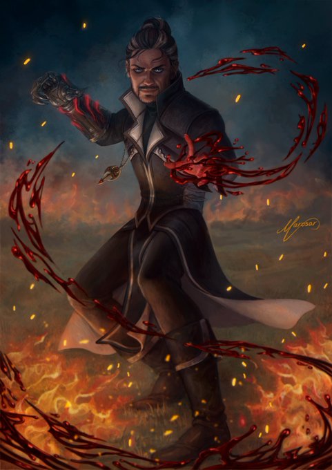 @nightlocke_art My main (that will be shelfed) Casimir, a Frost mage turned Hemomancer with a cursed gauntlet used as a conduit for it.