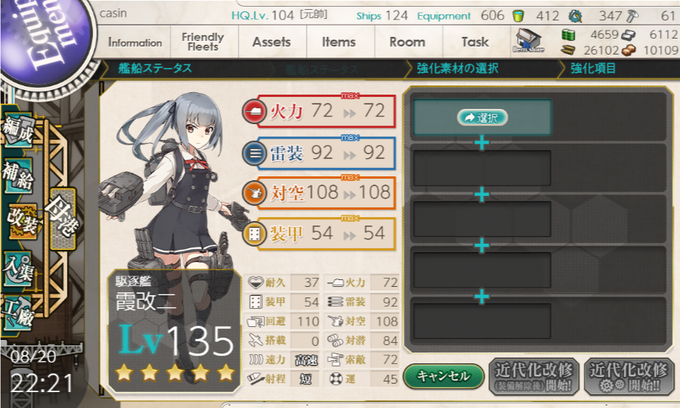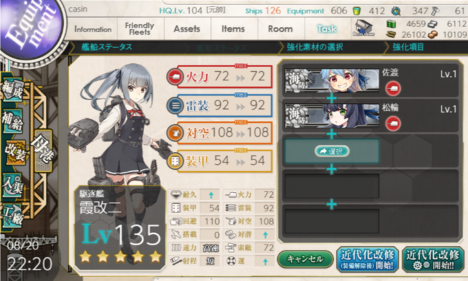 さっそくマツワとさわたりをブチこむ 耐久が1上がった
