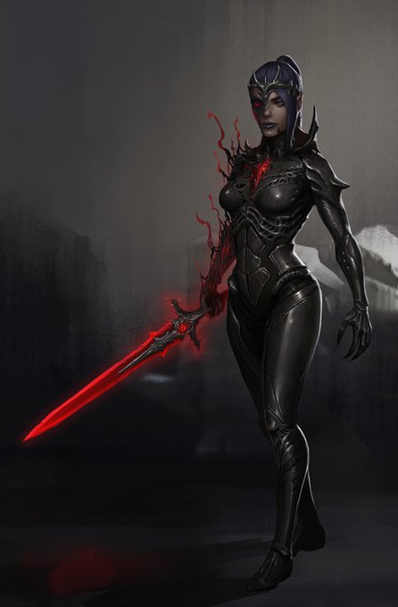 Another character from that Grimdark fantasy project I'm developing with @Art_By_Jon! A cursed swordsman by the name of Shriya.