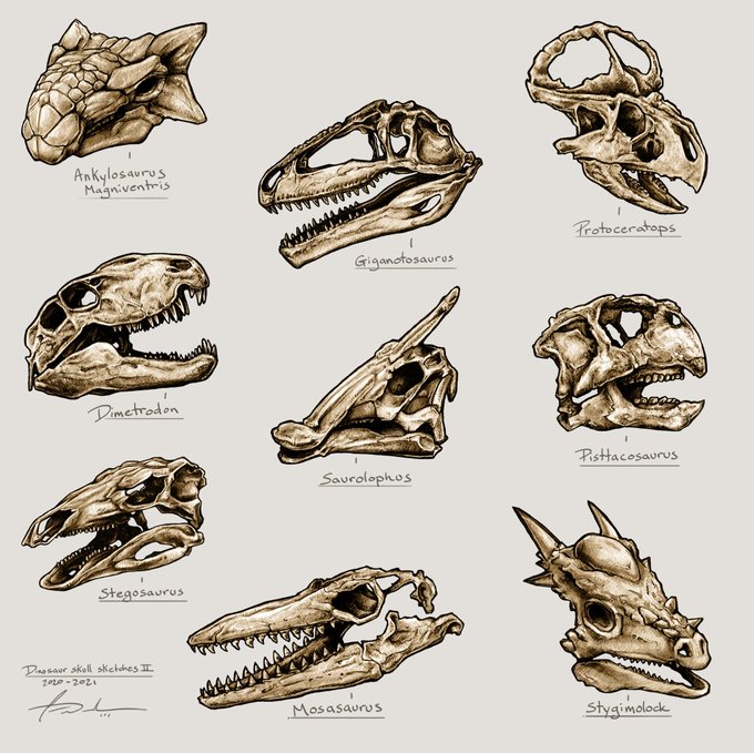 Woo! Made it! Proud of myself for pushing to complete a personal project of doing a second set Dinosaur skull sketches. Thank you all who tolerated me on this journey.