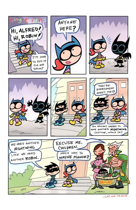 Tim Drake (Robin) doesn't follow the no-names-in-the-field rule and blurts out Cass's name to Harley Quinn disguised as Batgirl